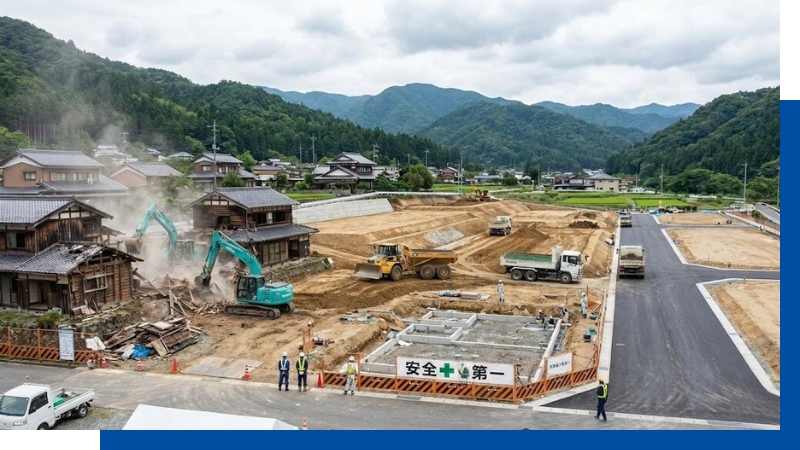 解体・造成・建築・外構までを弊社が元請けとして一括管理いたします。分離発注で発生しがちな業者間の中間マージンや重複経費をカット。さらに、窓口を一本化することで連絡調整のロスをなくし、工期短縮とコストの適正化を実現します。